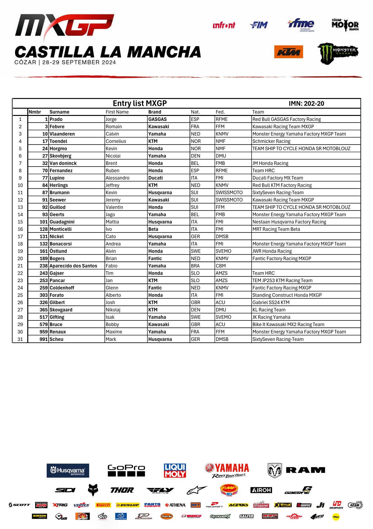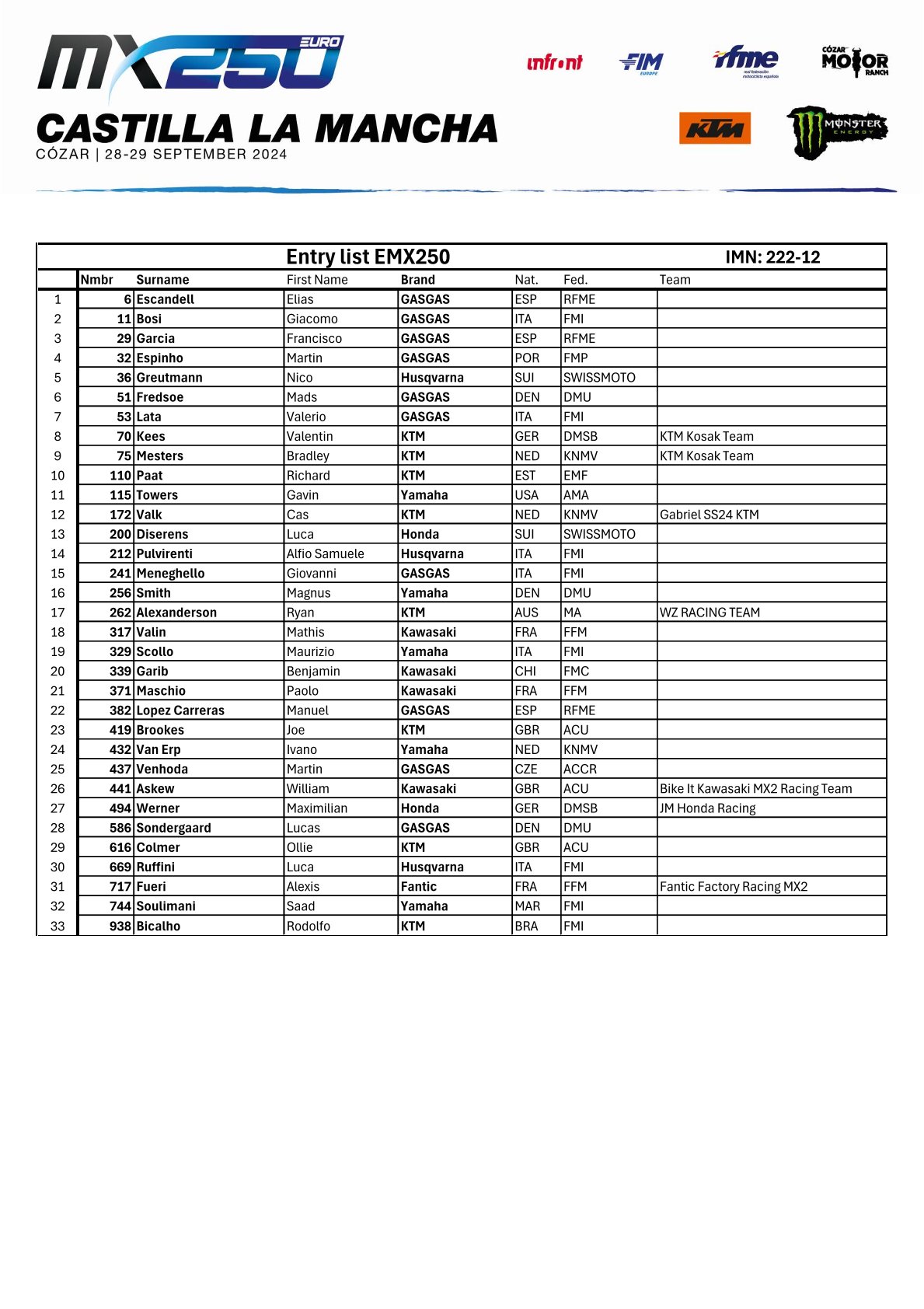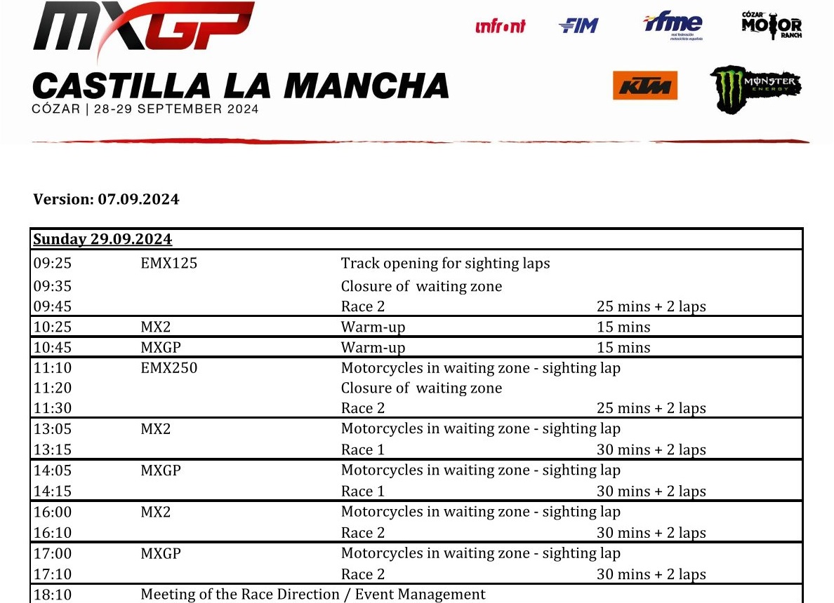 De laatste wedstrijd van het wereldkampioenschap wordt aankomend weekend verreden in Spanje. Ook zullen hier de titels vergeven worden in de EMX125 en EMX250 klasse. Bekijk hieronder de deelnemerslijsten en het tijdschema voor de wedstrijd.