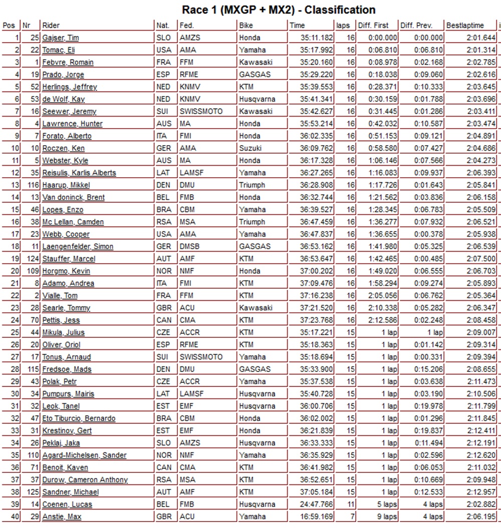Tim Gajser won de manche voor Eli Tomac en Romain Febvre.