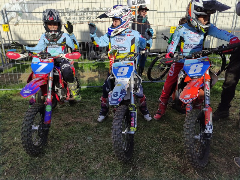 85cc: ook bij de 85cc’s zaten de Britten vooraan in de uitslag van de eerste reeks. Ook de Fransen en de Letten scoorden goed. Torre Van Mechgelen werd mooi 12de, Lukas Spigeleer 16de gevolgd door Timéo Mohring op 17. Nagenoeg zelfde scenario in de 2de reeks. Ook nu weer de Britten vooraan. Torre schoof nu op naar een 8ste plaats aan de geblokte vlag. Lukas Spigeleer 19de en Timéo Mohring 20ste. Hayden Statt uit Groot Britannië won ook de 3de reeks. Nu werd Van Mechgelen 13de, Spigeleer 17de en Mohring 18de. Hayden Statt werd eindwinnaar. In het landenklassement veroverde Letland de titel voor Frankrijk en GB (die wel heel wat pech kenden). België werd 7de bij de 85cc’s.