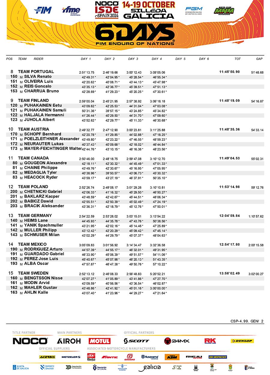 Hierbij het klassement van de Nederlanders na vier dagen met dank aan enduro.nl