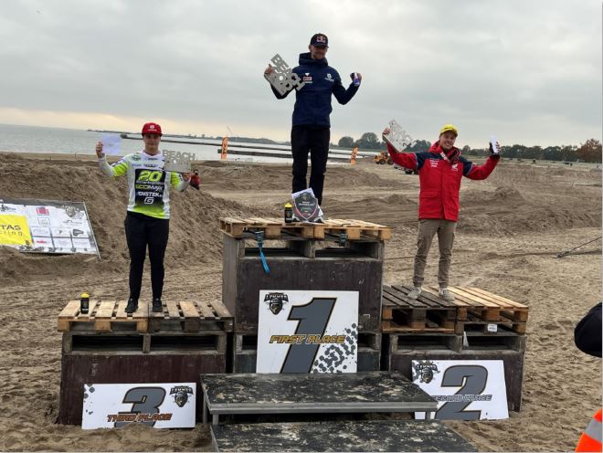 Met twee vierde plaatsen en een derde plaats in de Superfinale, liet Jeremy zien dat hij op de goede weg is voor de komende strandraces in Frankrijk. Aankomende zondag 27 oktober zullen beide jongens in het Franse Loon-Plage hun tweede wedstrijd hiervoor rijden. Damien zijn wedstrijd zal 1,5 uur duren en voor Jeremy staat een race van 2,5 uur op het programma.