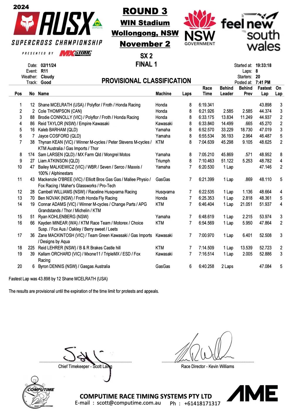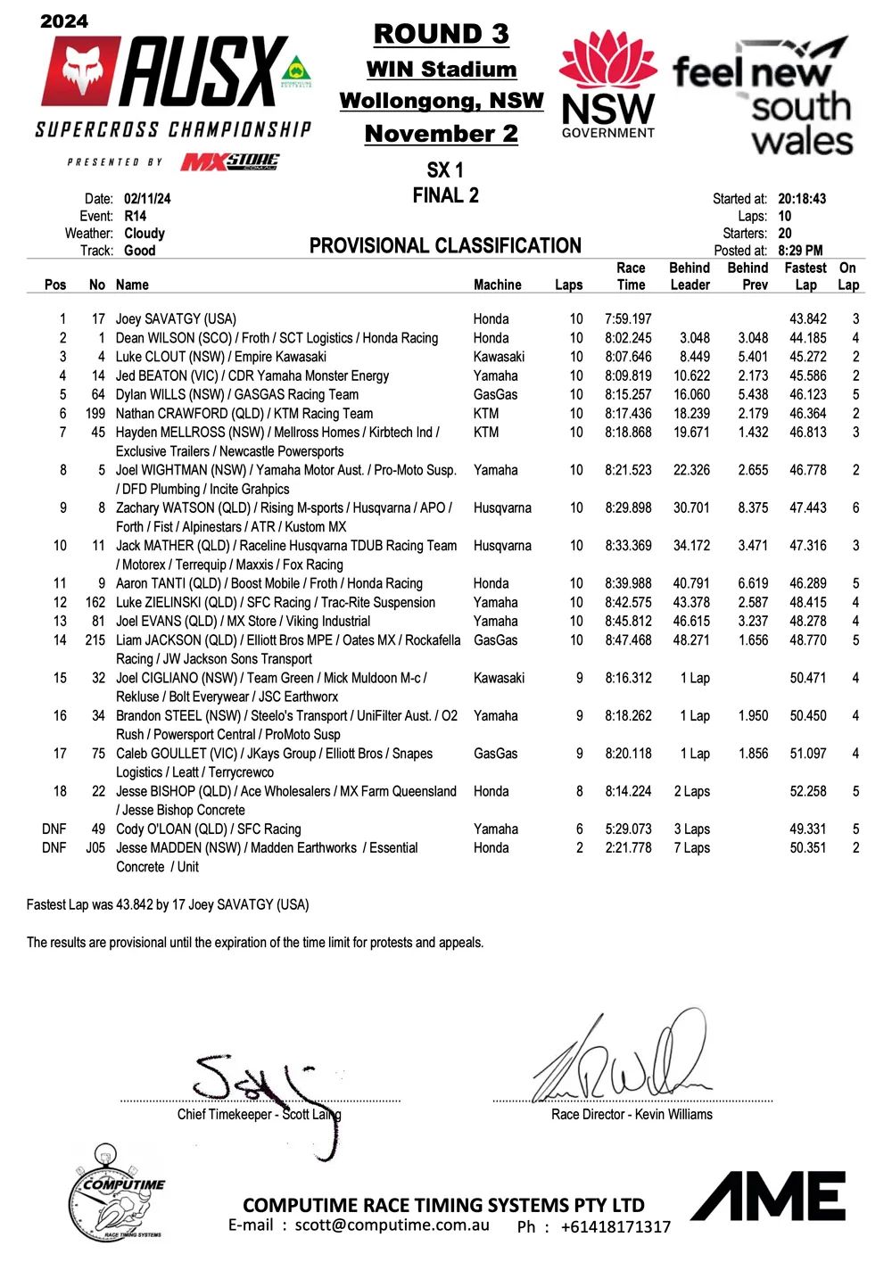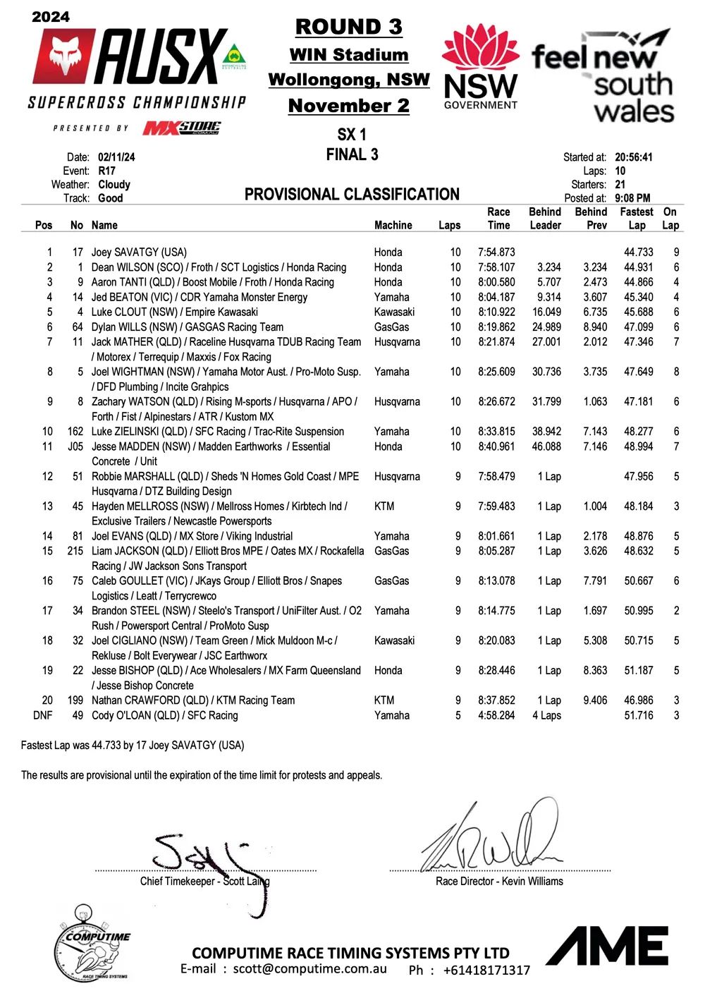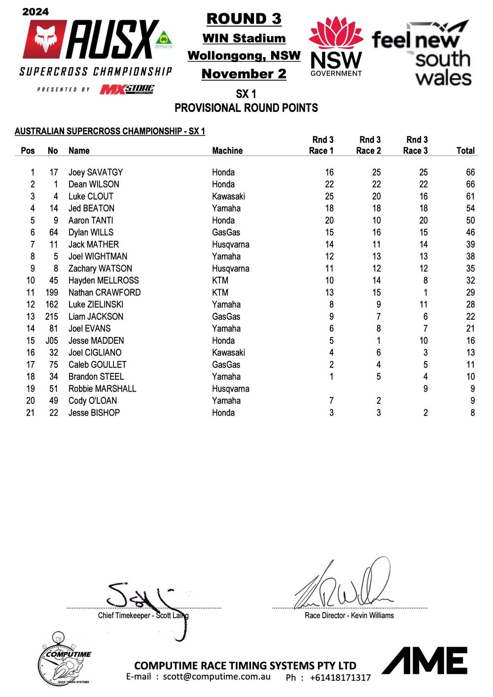 Savatgy en McElrath winnen Australisch SX Kampioenschap in Wollongong by motocrossplanet2 november 2024 Joey Savatgy en Shane McElrath hebben de derde wedstrijd van het Australisch Supercross Kampioenschap in Wollongong weten te winnen. Bekijk de volledige uitslagen hieronder: