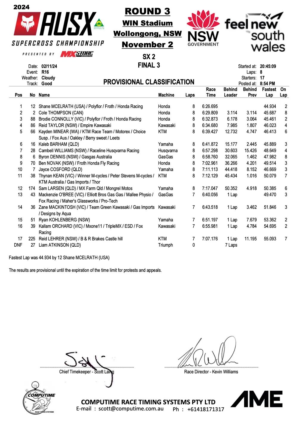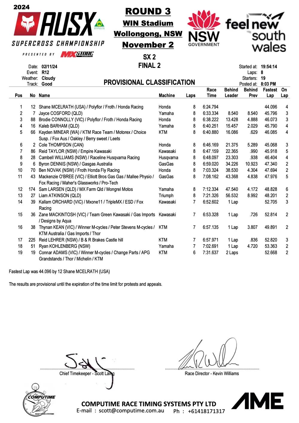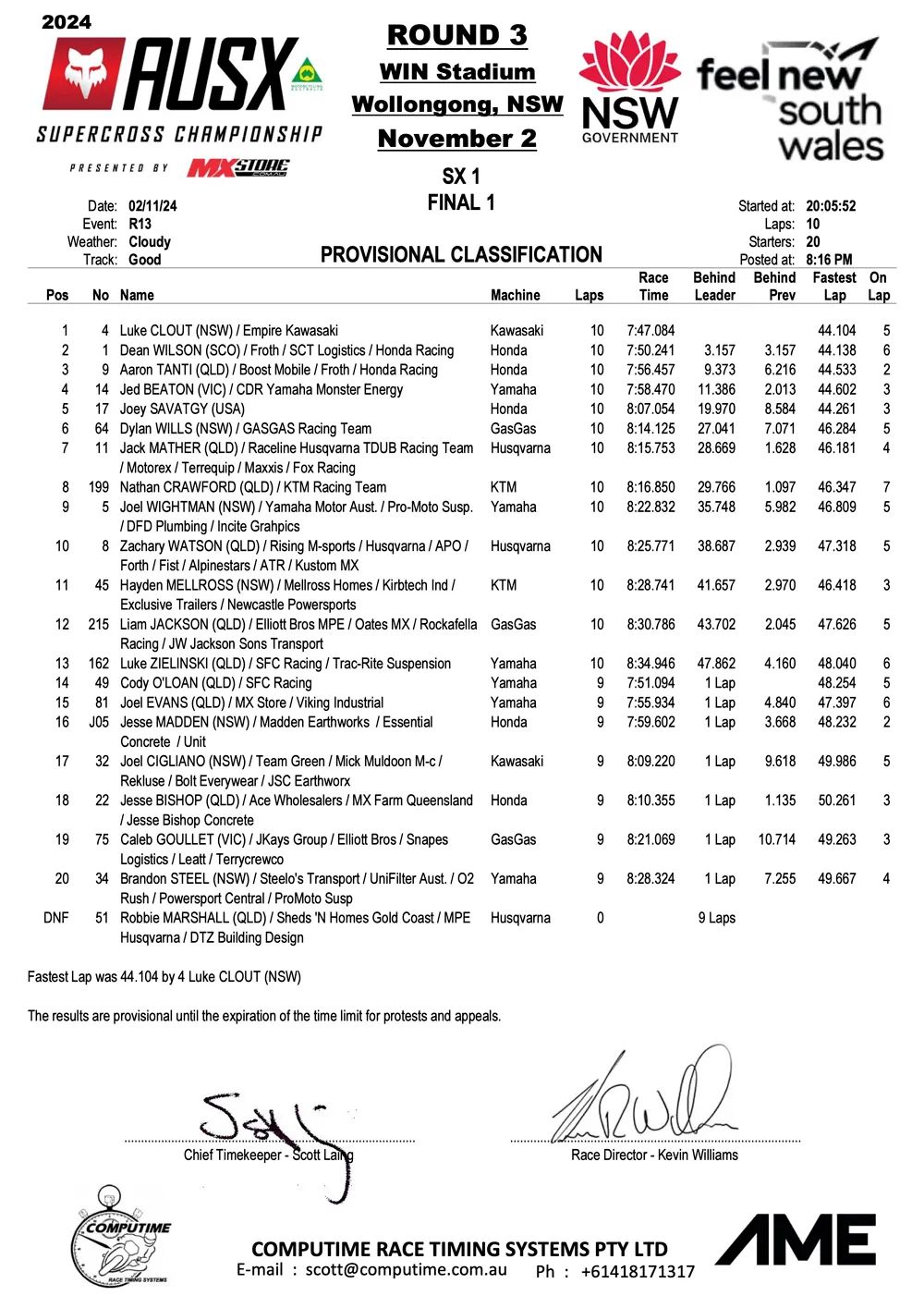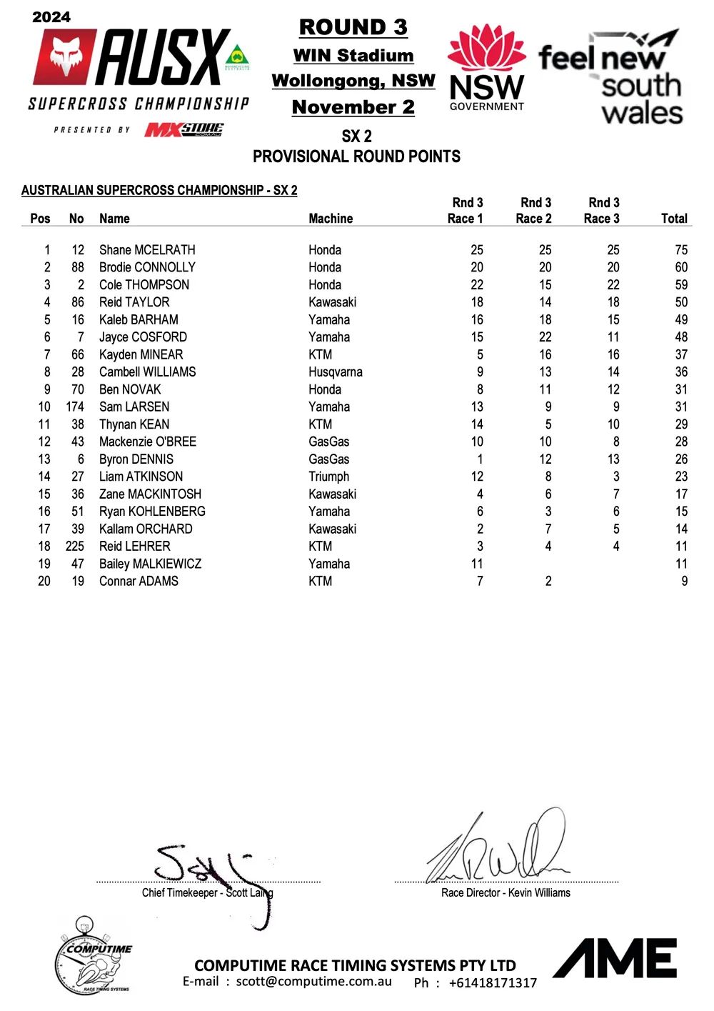 Savatgy en McElrath winnen Australisch SX Kampioenschap in Wollongong by motocrossplanet2 november 2024 Joey Savatgy en Shane McElrath hebben de derde wedstrijd van het Australisch Supercross Kampioenschap in Wollongong weten te winnen. Bekijk de volledige uitslagen hieronder: