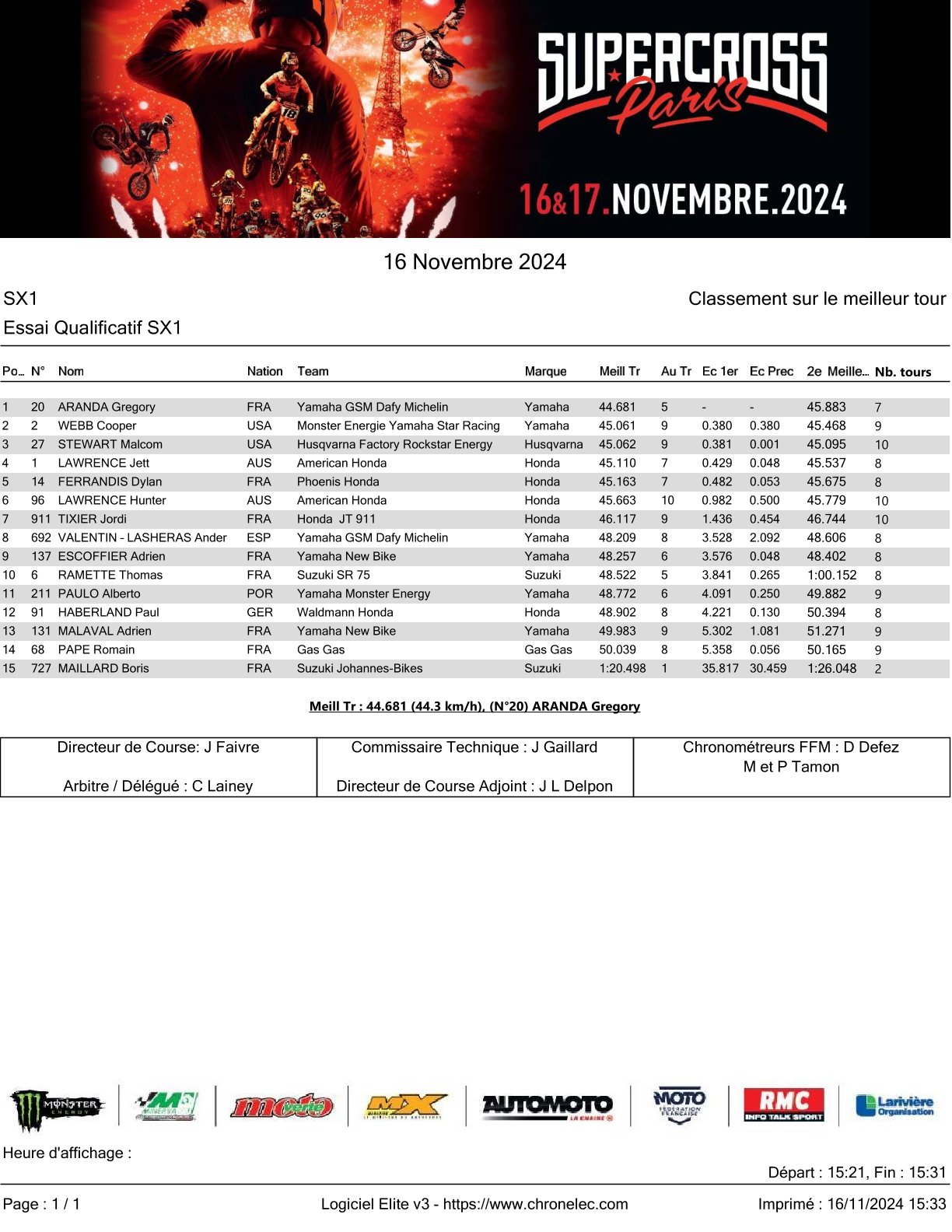 Aranda en Vialle snelste in tijdtraining Parijs by motocrossplanet16 november 2024 Greg Aranda en Tom Vialle hebben in de tijdtraining van de Supercross in Parijs de snelste tijden neer weten te zetten. Bekijk de volledige uitslag hieronder: