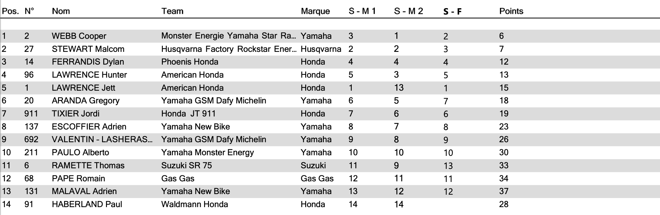 In de tweede finale reed Lawrence opnieuw aan de leiding totdat hij met een achterblijver in aanraking kwam en viel. De zege ging daardoor Webb voor Stewart en Hunter Lawrence. Jett Lawrence werd pas dertiende waardoor hij veel punten verloor.