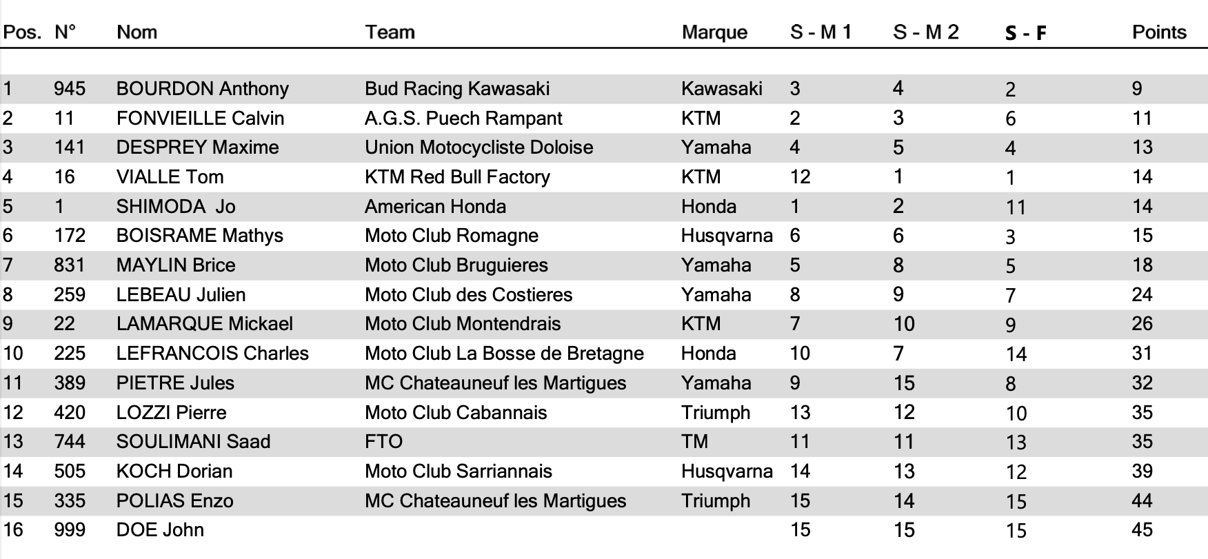 In de tweede en derde finale wist Vialle wel te winnen. Shimoda werd in de tweede finale tweede en zette in de derde finale Vialle flink onder druk. Door een valpartij moest hij geblesseerd de wedstrijd verlaten en moest daardoor de tweede plaats aan Bourdon laten. Mathys Boisrame werd sterk derde voor Maxime Desprey en Brice Maylin.