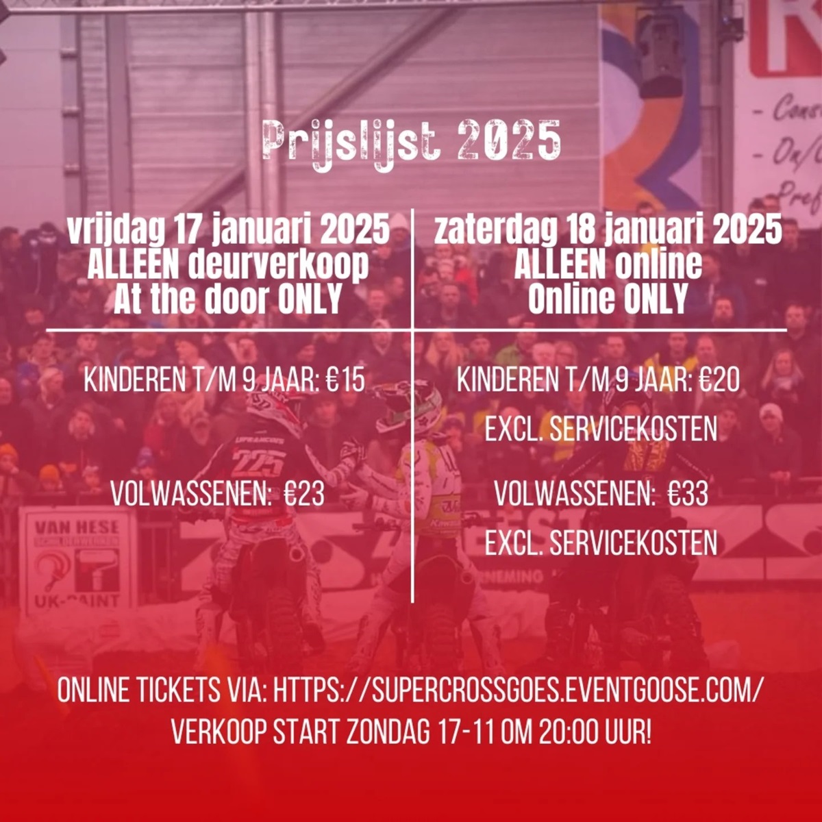 De kaartverkoop voor de supercross in Goes is van start. Deze mooie Nederlandse supercross wordt verreden in het weekend van 17 en 18 januari in de Zeelandhallen.