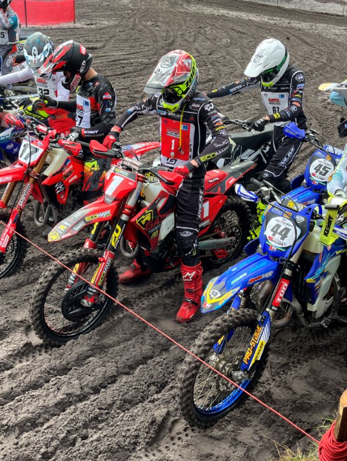 In Saint-Leger-De-Blason (afgelopen zondag) mocht Jeremy als 23e een startplek uitzoeken. Hij had een redelijke start en kwam door rond een 15e plaats. Gelijk had hij een goed ritme te pakken en wist zich al snel op te werken naar een 6e plaats. Helaas kwam Jeremy kort daarna in een moddergat terecht en viel hij er over de kop af. Hij kreeg de motor op zich. Jeremy kon gelukkig weer zijn weg vervolgen maar de motor was erg beschadigd. Gelukkig moest Jeremy ook deze ronde de pits al in komen en dat was ook echt nodig om de motor weer te repareren. Er was behoorlijk wat tijd nodig om een noodzakelijke reparatie te maken voor het loszittende luchtfilter. Toen dit na enkele minuten gebeurd was kon hij zijn weg weer vervolgen en kwam als 20e rijder terug op de baan.