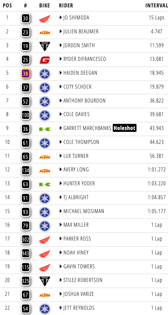 10. Maximilian Spies (GER, KTM), +1 Rnd.