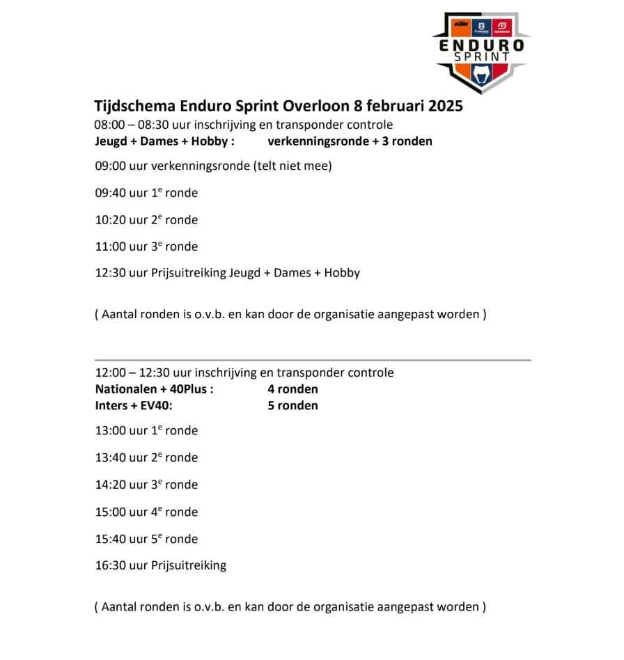 MSV heeft de primeur om de 1e Enduro Sprint te mogen organiseren en wel op zaterdag 8 februari. Wij zijn trots dat we een EnduroSprint mogen organiseren, na een paar jaar geen EnduroSprint meer gehad te hebben is deze gelukkig weer aan de kalender toegevoegd. Een aantal enthousiaste mensen en KTM hebben de handen ineengeslagen om dit evenement weer op de kalender te krijgen. Op de site www.endurosprint.nl kun je kijken voor meer info.