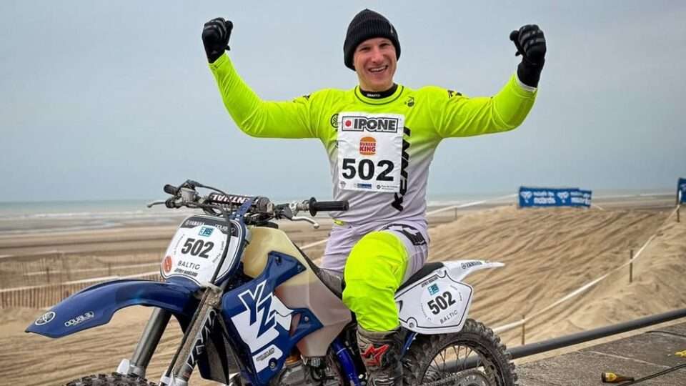De baanwielrenner zei eerder deze week tegen de regionale omroep Oost dat hij niet lang na hoefde te denken toen hij door de organisatie van de strandrace werd uitgenodigd. “Toen ben ik als een gek gaan zoeken naar een motor van voor 1996. Dat was verplicht. En van het een kwam het ander”, aldus Hoogland, die de motor zelf met zijn vader in elkaar sleutelde.