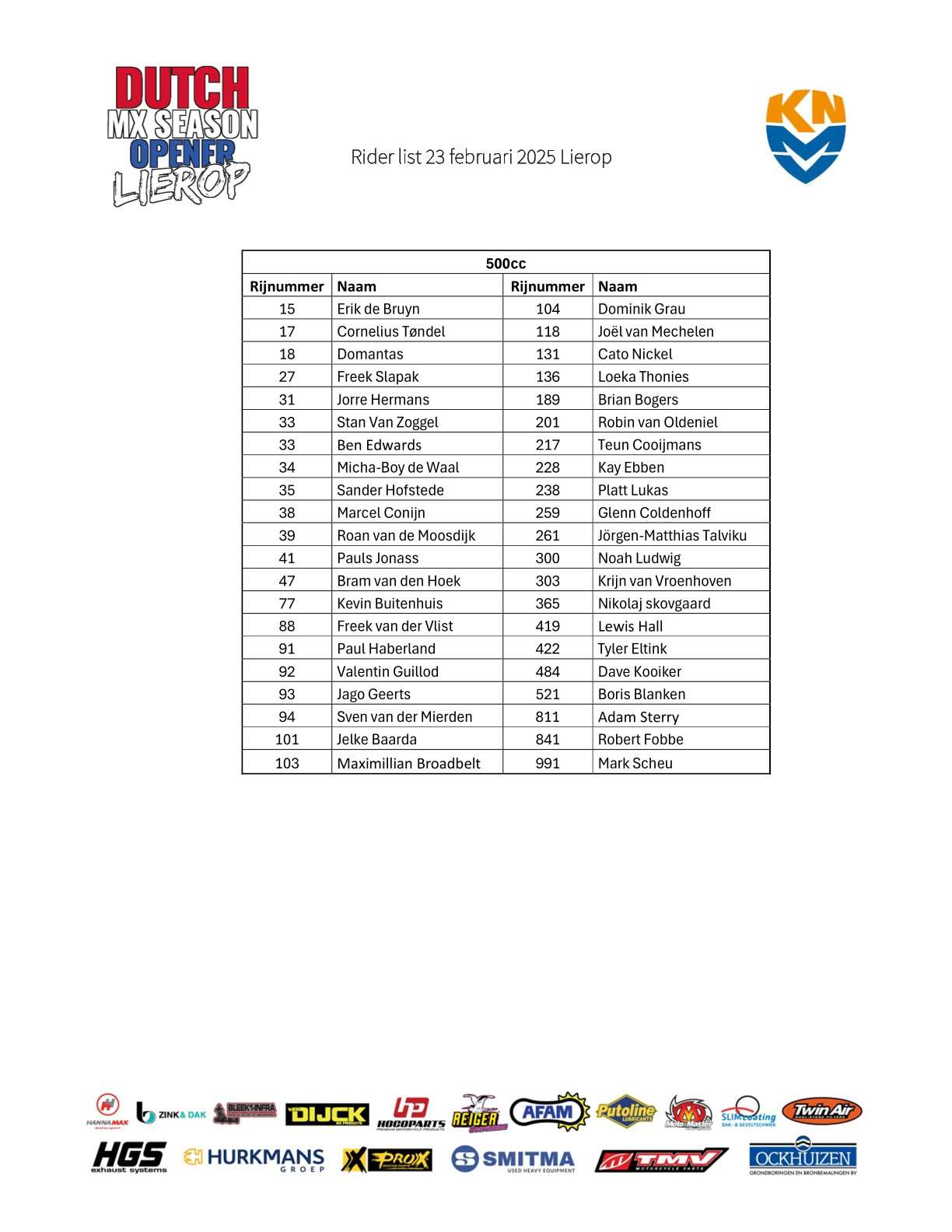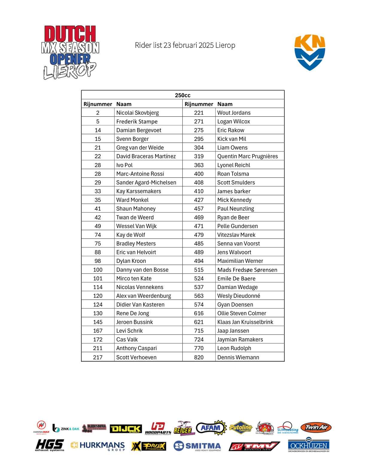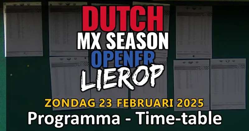Aanstaande zondag (23 februari) staat de Dutch MX Season Opener in Lierop op het programma in Lierop. Met de vele toprijders en de goede weersvoorspellingen beloofd het een mooie wedstrijd te gaan worden.