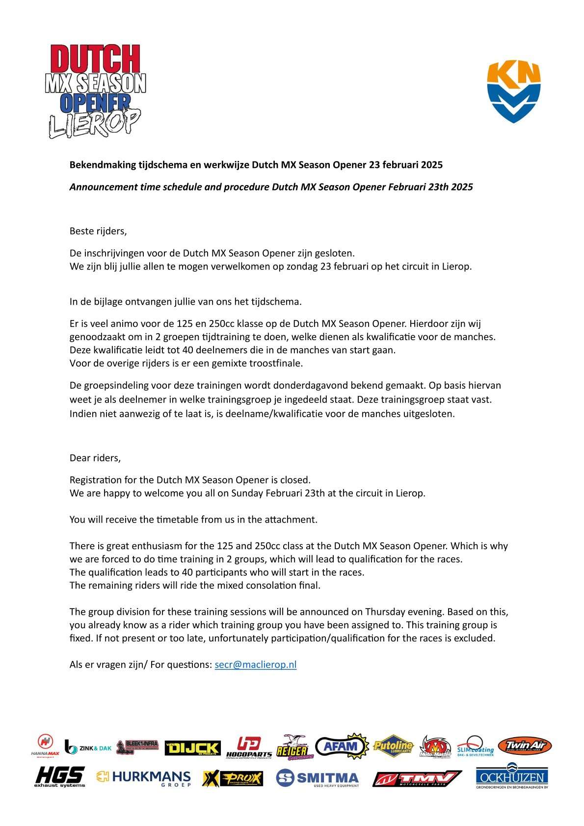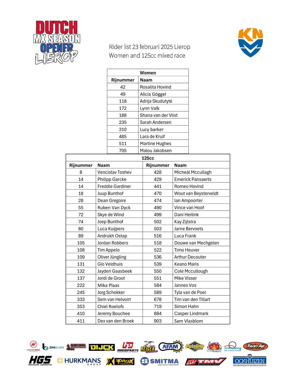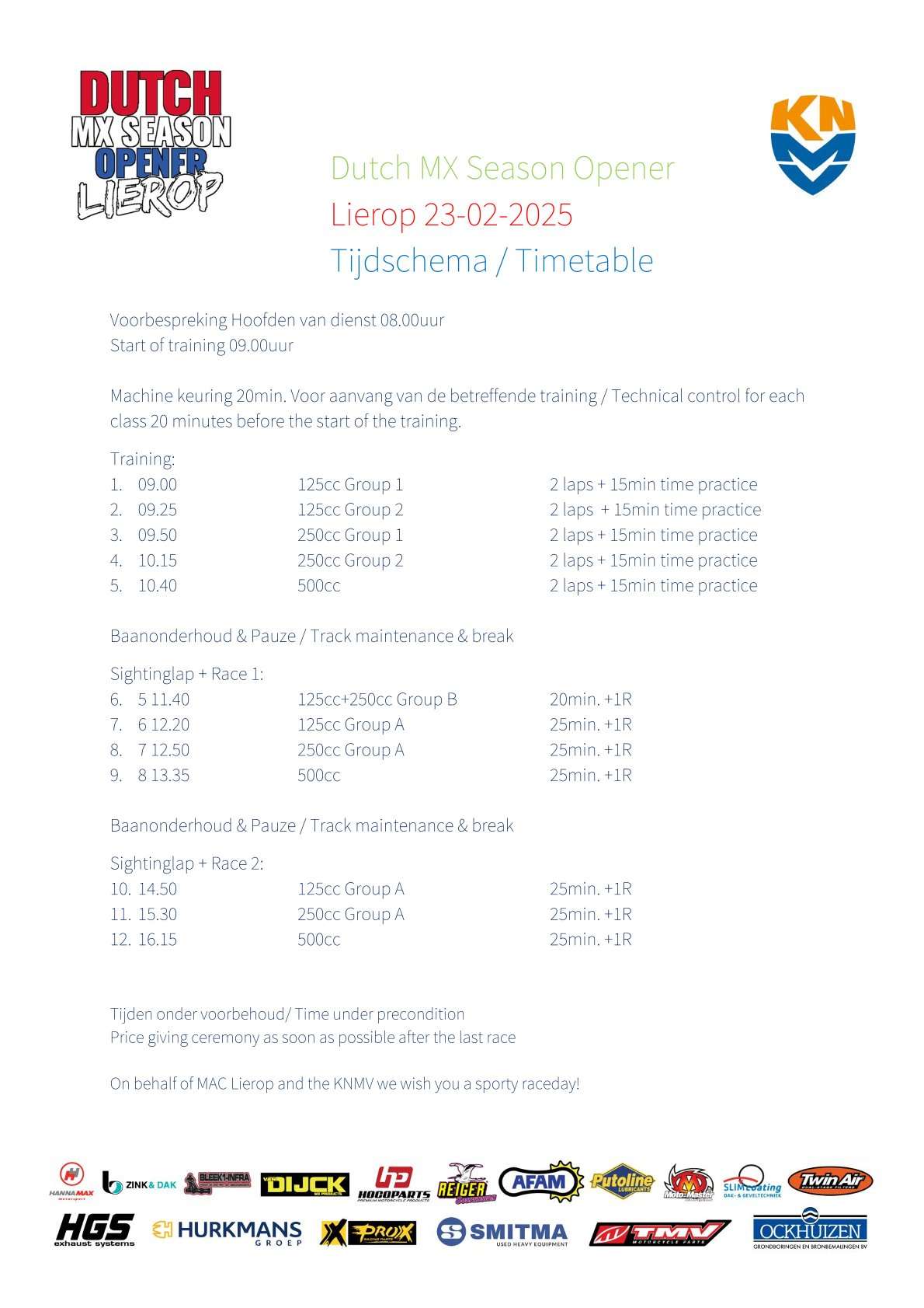 Aanstaande zondag (23 februari) staat de Dutch MX Season Opener in Lierop op het programma in Lierop. Met de vele toprijders en de goede weersvoorspellingen beloofd het een mooie wedstrijd te gaan worden.