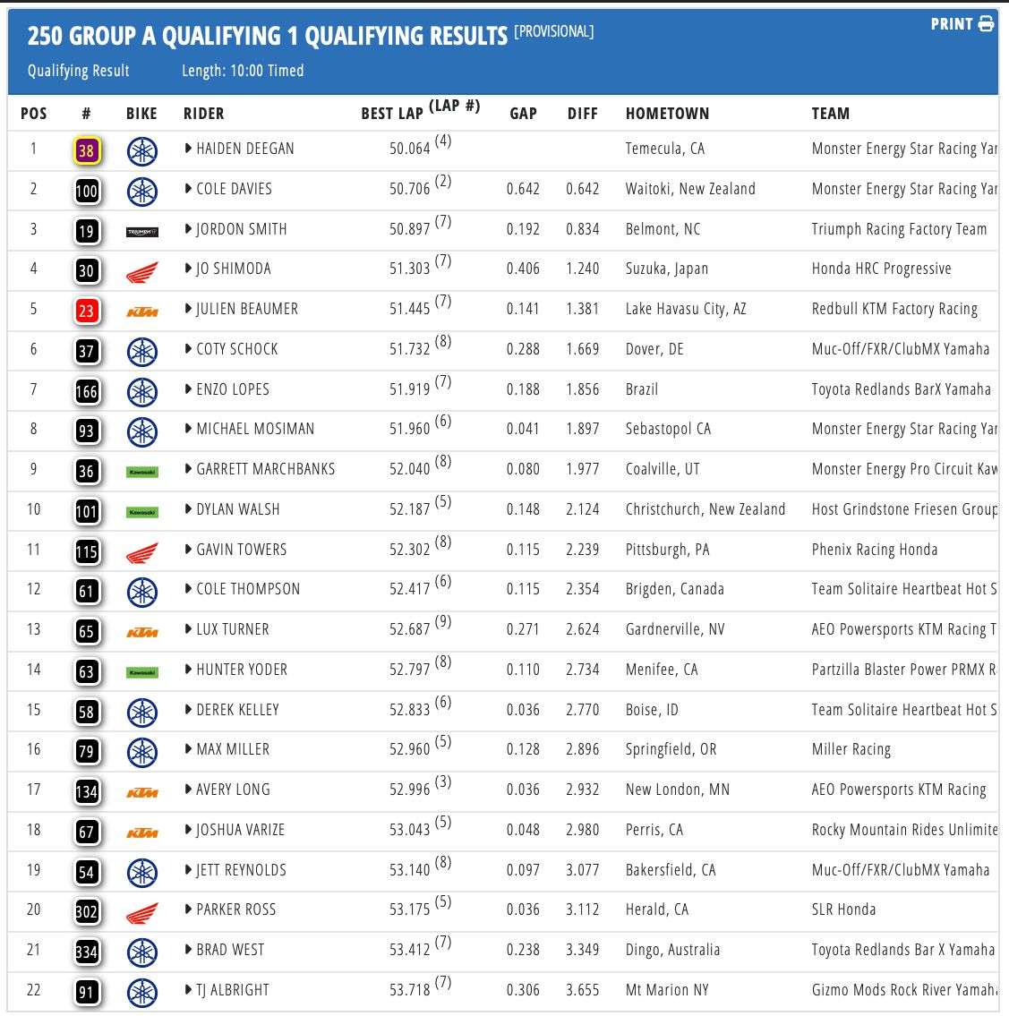 Sexton en Deegan snelste in eerste tijdtraining Arlington by motocrossplanet22 februari 202522 februari 2025 Chase Sexton en Haiden Deegan hebben in de eerste tijdtraining van de AMA Supercross in Arlington de snelste tijd op de klok weten te zetten. Bekijk de tijden hieronder: Photocredits – Align Media