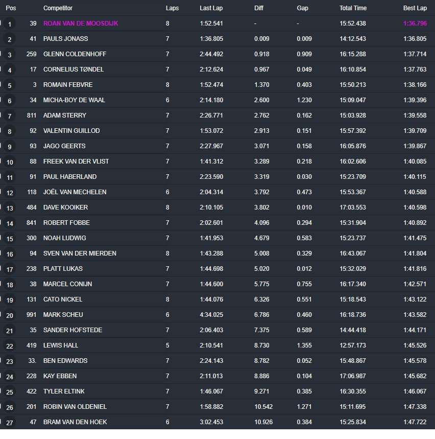 Roan van de Moosdijk heeft in de 500 klasse in Lierop de snelste tijd neer weten te zetten. Hij bleef hiermee Pauls Jonass en Glenn Coldenhoff voor.
