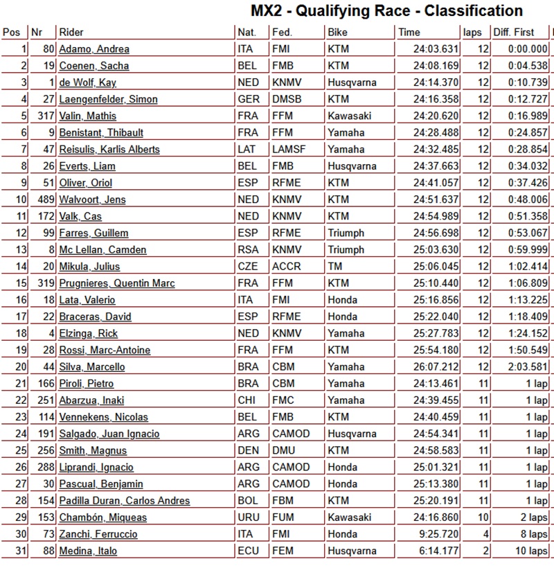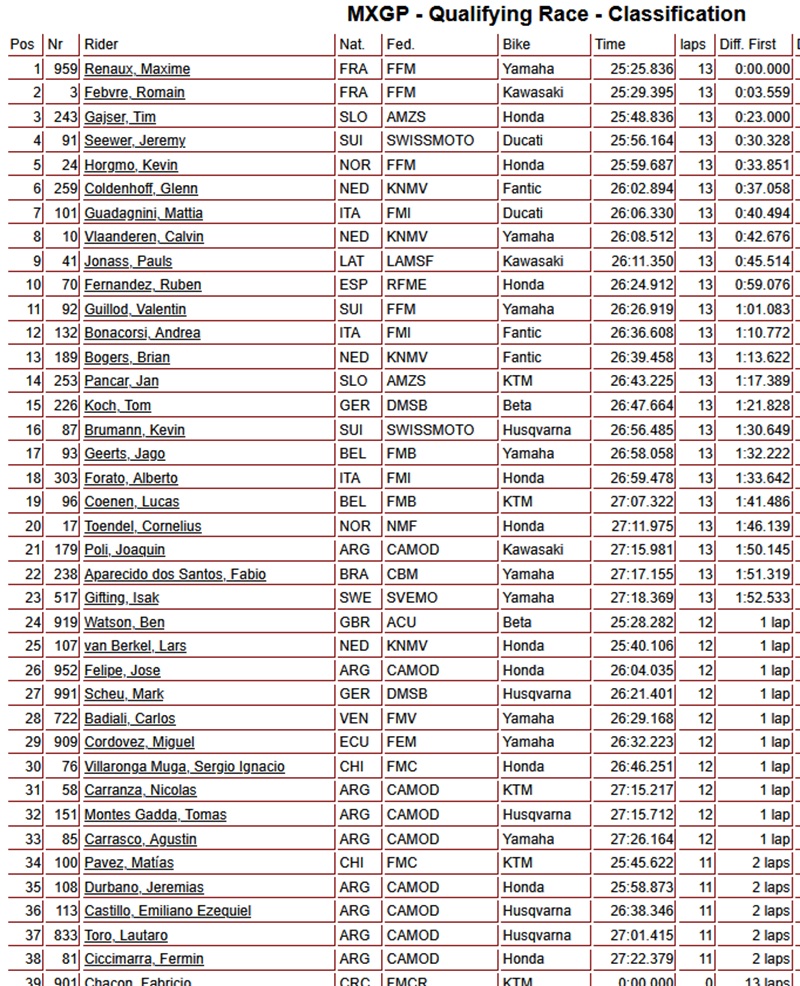 Renaux en Adamo winnen kwalificatieheats in Argentinie by motocrossplanet1 maart 20251 maart 2025 Maxime Renaux en Andrea Adamo hebben de kwalificatieheats van de Grand Prix van Argentinie weten te winnen. Bekijk hieronder de uitslagen: Photocredits Full Spectrum Media