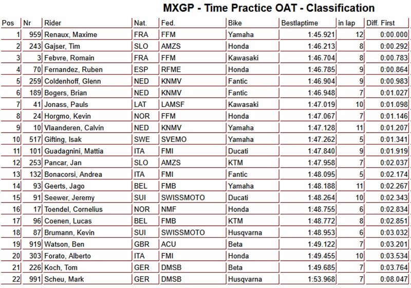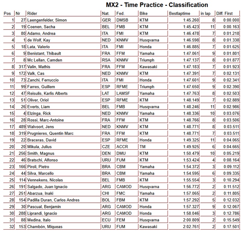 Laengenfelder en Renaux snelste in tijdtraining Argentinie by motocrossplanet1 maart 2025 Simon Laengenfelder en Maxime Renaux hebben in de tijdtraining van de MXGP in Argentinie de snelste tijden op de klok weten te zetten. Bekijk de uitslagen hieronder: Photographer: Taglioni S.