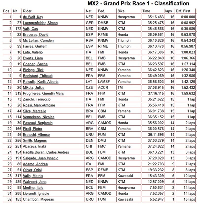 Kay de Wolf heeft op overtuigende wijze de eerste manche van de Grand Prix MX2 in Argentinie weten te winnen. De Wolf nam de holeshot en reed vervolgens een gecontroleerde wedstrijd. Simon Laengenfelder finishte als tweede voor de sterk rijdende Cas Valk!