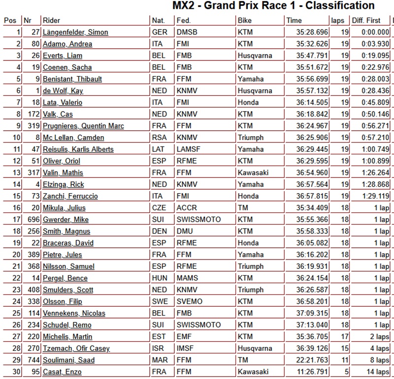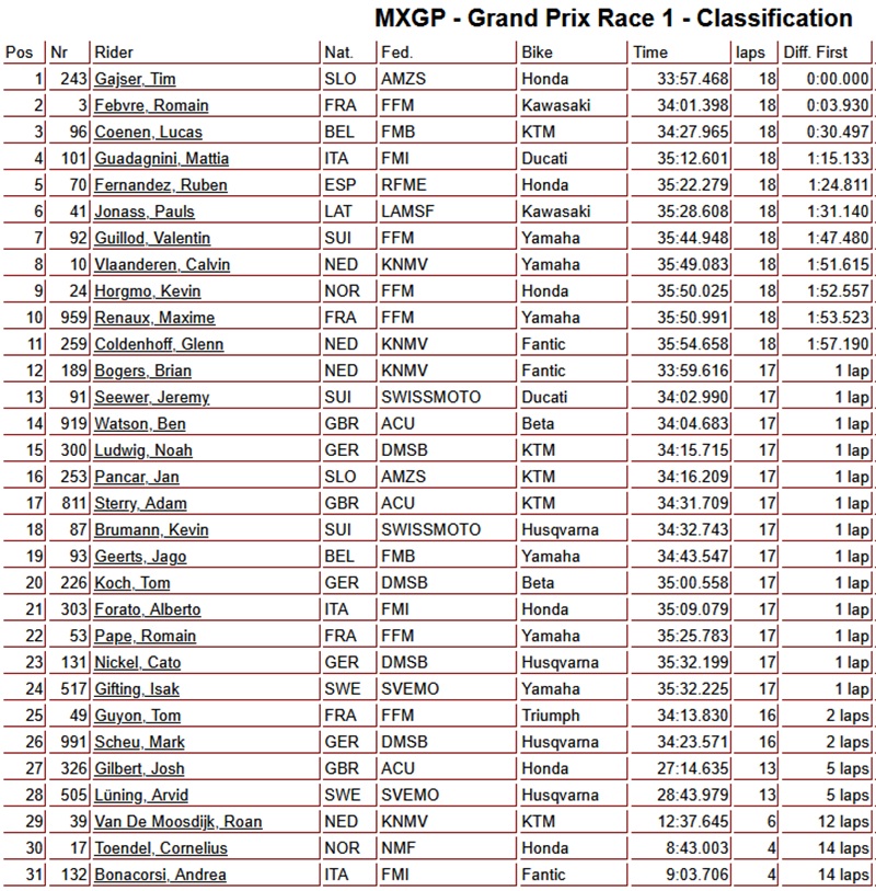 Gajser en Laengenfelder winnen eerste manche MXGP Frankrijk by motocrossplanet23 maart 202523 maart 2025 Tim Gajser en Simon Laengenfelder hebben de eerste manche van de Grand Prix van Frankrijk gewonnen. Bekijk de volledige uitslagen hieronder: Photocredits – Juan Pablo Acevedo