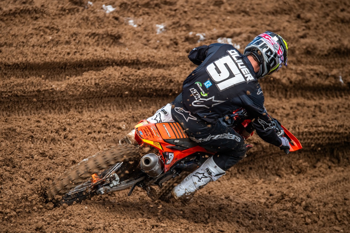 In het dagklassement eindigde Oliver op een twaalfde plaats en staat nu dertiende in de tussenstand. Aankomende zondag zal BTS Racing aan de start komen tijdens de eerste wedstrijd van de Dutch Masters of Motocross in Harfsen, een week later wordt de eerstvolgende Grand Prix verreden in Riola Sardo, Sardinie.
