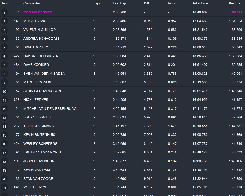 Febvre klokt de snelste tijd in 500 Harfsen by motocrossplanet30 maart 2025 Romain Febvre heeft in de tijdtraining van de 500 klasse in Harfsen een hele scherpe tijd neer weten te zetten en de pole position verovert. Bekijk hieronder de uitslagen. https://speedhive.mylaps.com/livetiming/FC2DF9159DC2E312-2147483649