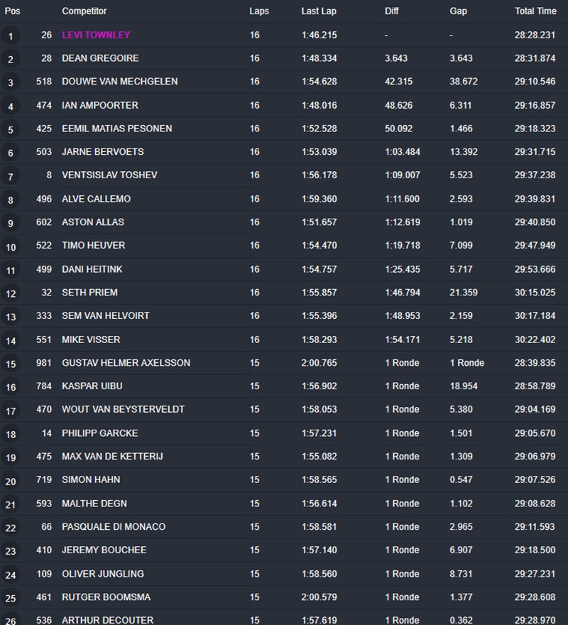 Levi Townley heeft de tweede manche van de Dutch Masters 125 in Harfsen gewonnen en is hiermee eindwinnaar geworden voor Dean Gregoire en Douwe van Mechgelen.
