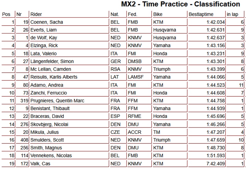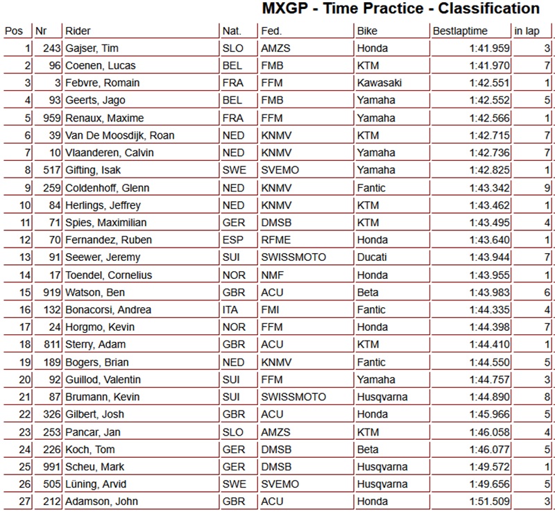Coenen en Gajser snelste in tijdtraining MXGP in Sardinië by motocrossplanet5 april 20255 april 2025 Sacha Coenen en Tim Gajser hebben in de tijdtraining van de MXGP in Sardinie de snelste tijd op de klok weten te zetten. Bekijk hieronder de tijden: Photocredits – Juan Pablo Acevedo