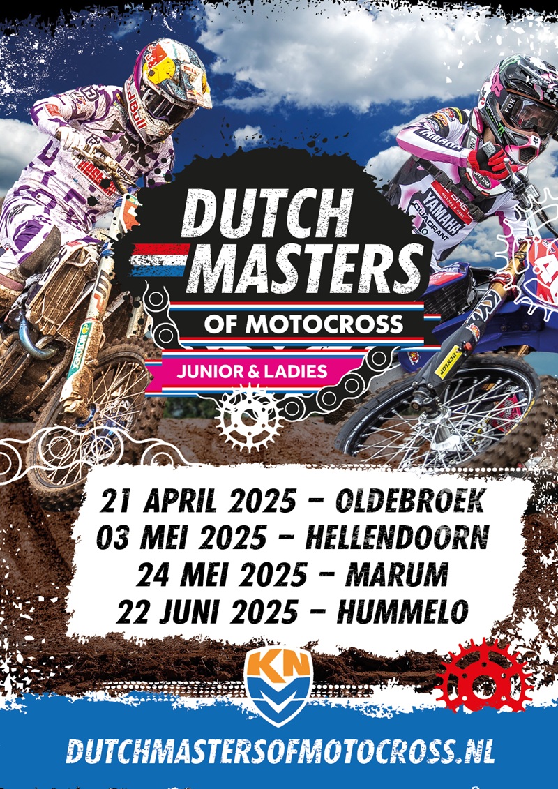 Dit jaar organiseert de KNMV voor het eerst de Dutch Masters of Motocross Junior & Ladies: een landelijke competitie voor de breedtesport met mooie circuits die top geprepareerd zijn. Daar wil je bij zijn!