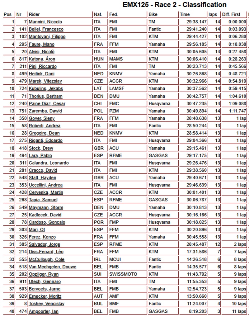 Niccolo Mannini wint de tweede manche EMX125 in Trentino by motocrossplanet13 april 2025 Photocredits – MXGP