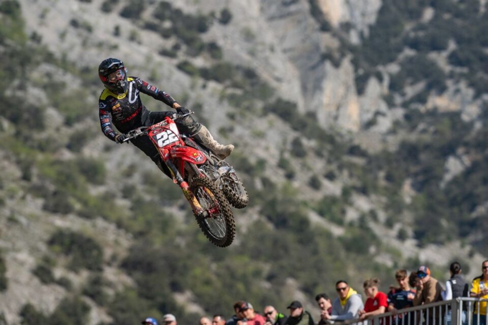 David Braceras van JM Racing Honda heeft tijdens de vijfde wedstrijd van het wereldkampioenschap MX2 in het Italiaanse Arco di Trento een goede snelheid laten zien.