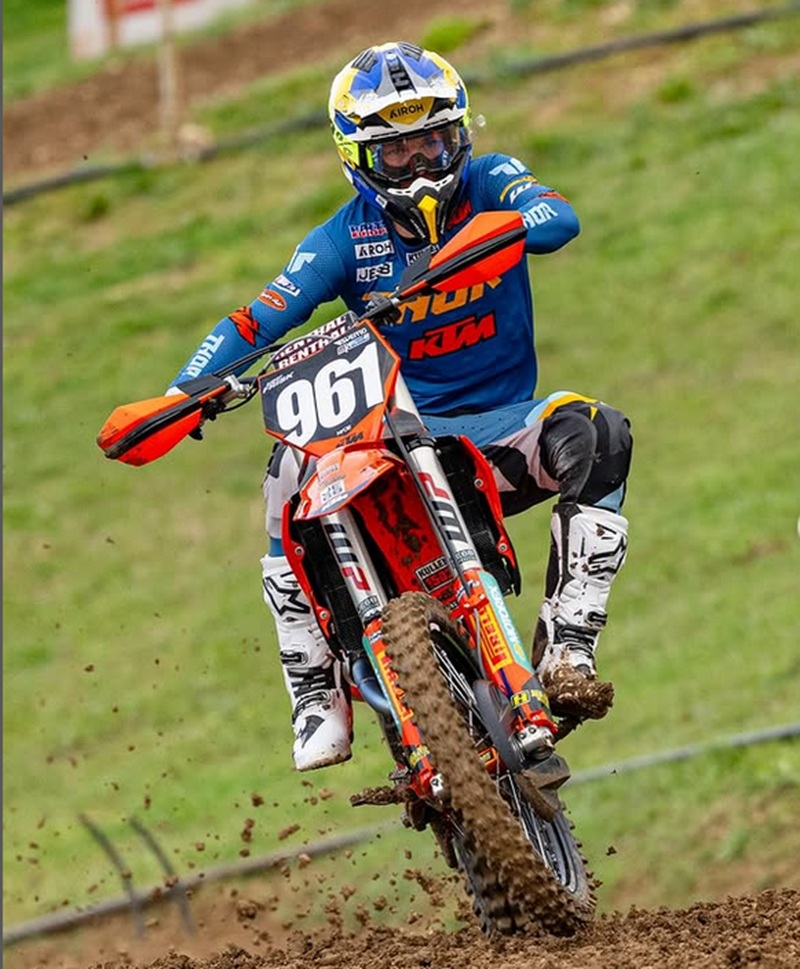 August Frisk heeft de eerste manche van de EMX250 klasse in Zwitserland gewonnen voor Nico Greutmann.