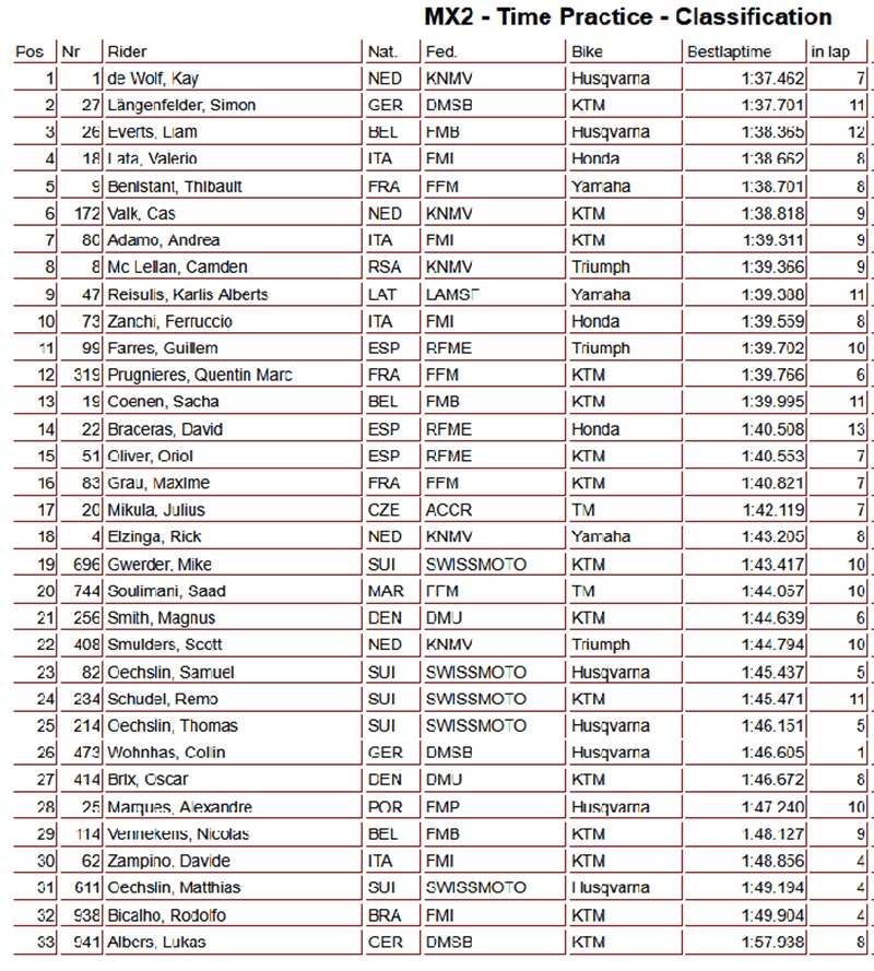 Kay de Wolf snelste in tijdtraining MX2 in Zwitserland by motocrossplanet19 april 2025 Kay de Wolf heeft in de tijdtraining van de MX2 klasse in Zwitserland de snelste tijd op de klok weten te zetten. Simon Laengenfelder trainde als tweede voor Liam Everts! Photocredits Full Spectrum Media