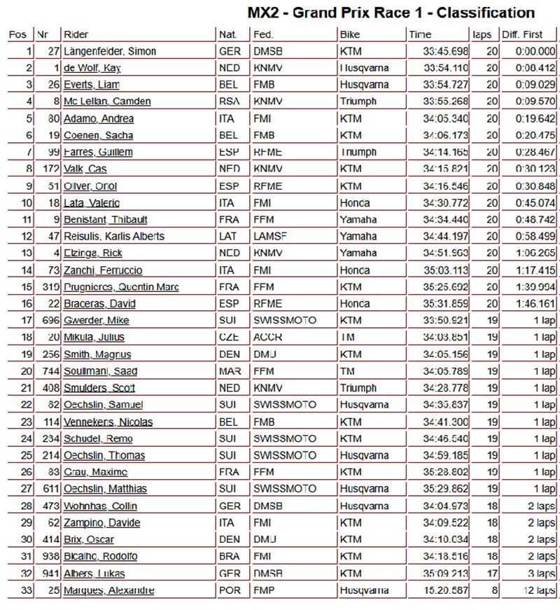 Laengenfelder wint eerste manche MX2 Zwitserland voor de Wolf by motocrossplanet21 april 2025 Simon Laengenfelder heeft de eerste manche van de Grand Prix MX2 in Zwitserland gewonnen voor Kay de Wolf en Liam Everts. Bekijk de volledige uitslag hieronder: Photocredits – Juan Pablo Acevedo