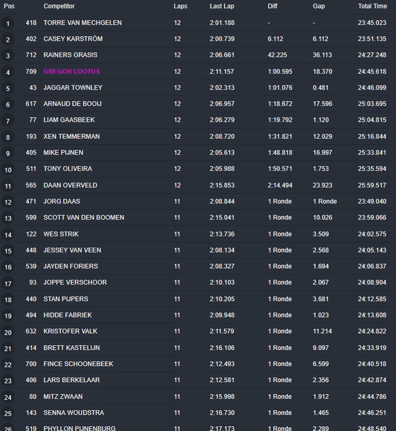 Torre van Mechgelen heeft beide manches van de 85cc klasse in Oldebroek weten te winnen. Bekijk de volledige uitslag van de tweede manche hieronder: