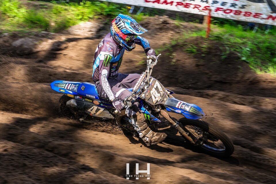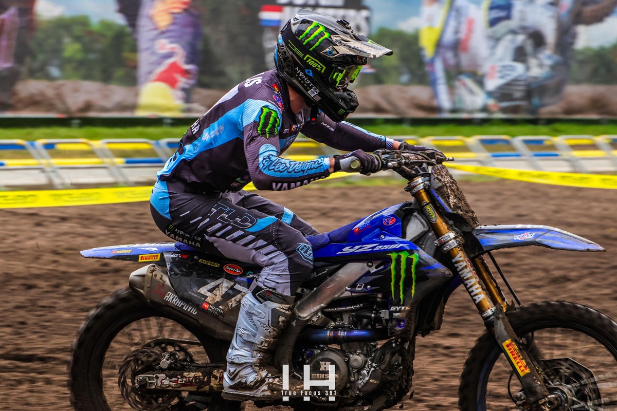 Karlis Alberts Reisulis van Monster Energy Yamaha Factory Racing MX2 is zaterdag tijdens de tweede wedstrijd van de Dutch Masters of Motocross in Oldebroek op het podium geeindigd.