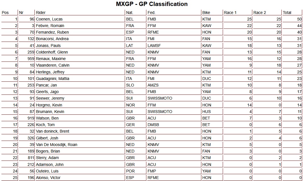 Lucas Coenen wint de tweede manche MXGP in Portugal by motocrossplanet4 mei 2025 Bekijk hieronder de volledige uitslagen: Photocredits – Juan Pablo Acevedo