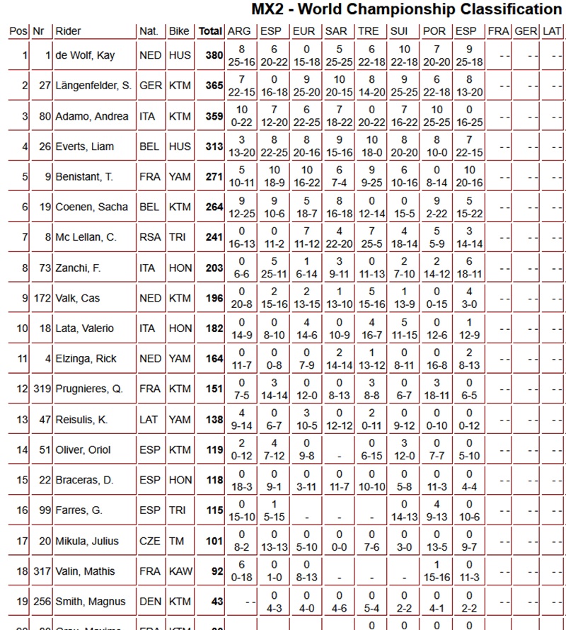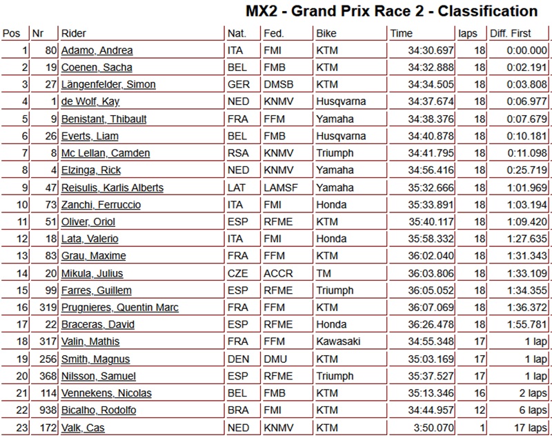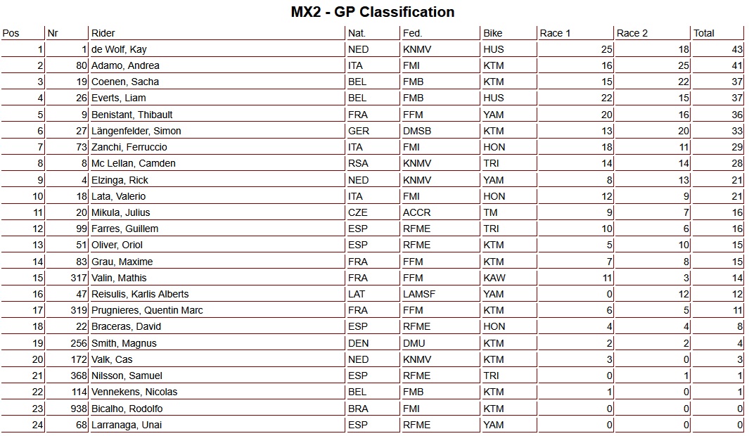 Adamo wint de tweede manche MX2 Galicië by motocrossplanet11 mei 202511 mei 2025 Bekijk de volledige uitslag hieronder: Photocredits – Juan Pablo Acevedo
