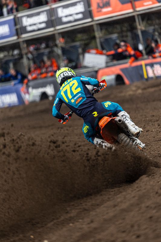 Aan de WMX-kant kende Lynn Valk een veel positievere dag. Ze pakte de holeshot in de eerste manche en reed lange tijd aan de leiding voordat ze op een sterke derde plaats over de finish kwam. In de tweede manche — die plaatsvond onder misschien wel de slechtste omstandigheden van het weekend — toonde Lynn veerkracht en vastberadenheid door als vierde te eindigen. Daarmee werd ze ook vierde in het dagklassement.