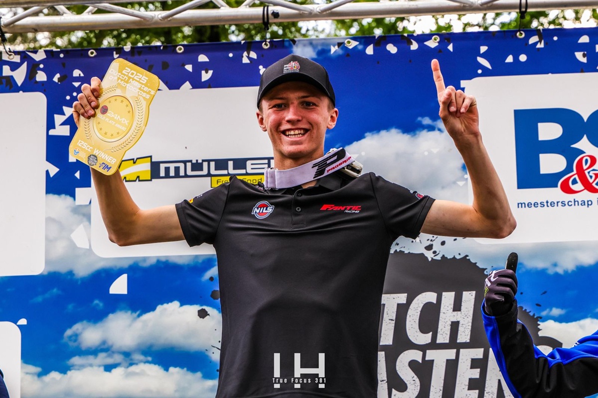 Douwe van Mechgelen van het Fantic Factory Racing 125 team heeft zondag in Markelo de Dutch Masters titel in de 125 klasse in de wacht weten te slepen.