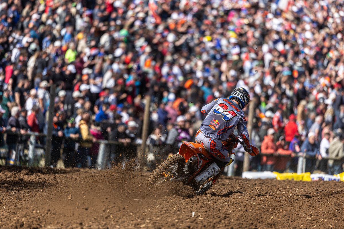 Commentaar Jeffrey Herlings: ‘’Het is best teleurstellend dat je hetzelfde aantal punten hebt als de derde man en dan niet op het podium staat. In de eerste manche heb ik lang om de koppositie gevochten en eindigde uiteindelijk als derde. Ik nam iets gas terug omdat ik last had van opgepompte armen. In de tweede manche was mijn start minder goed en kwam ik heel even een keer ten val. Het lukte mij net niet om de vierde man te pakken anders was ik derde geweest. Ik was heel dicht bij. P4 in het dagklassement en een goede stap voorwaarts.’’