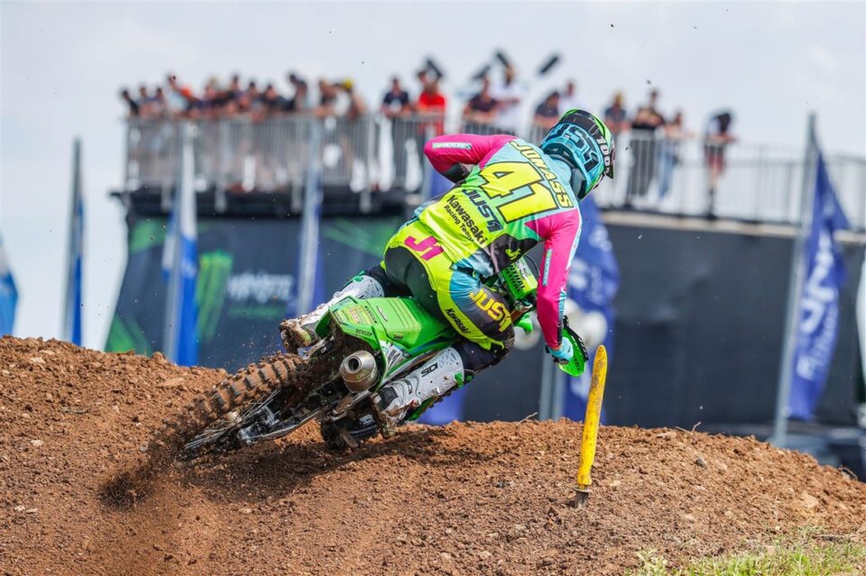 Pauls Jonass van het Kawasaki Racing Team is zondag in de eerste manche van de MXGP in Duitsland op een zevende plaats rijdend ten val gekomen. Hierbij is Jonass geblesseerd geraakt en heeft zijn sleutelbeen en schouderblad gebroken.