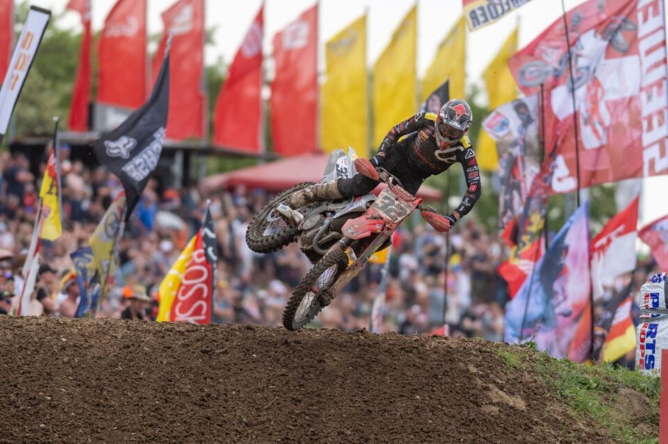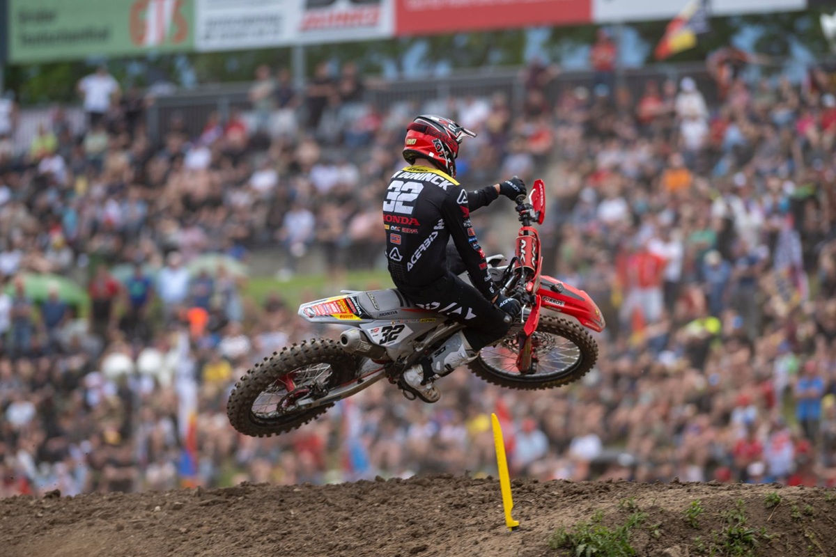 Brent van Doninck van het JM Racing Honda team is zondag tijdens de tiende wedstrijd van het wereldkampioenschap MXGP in het Duitse Teutschenthal een manche in de top tien geeindigd.