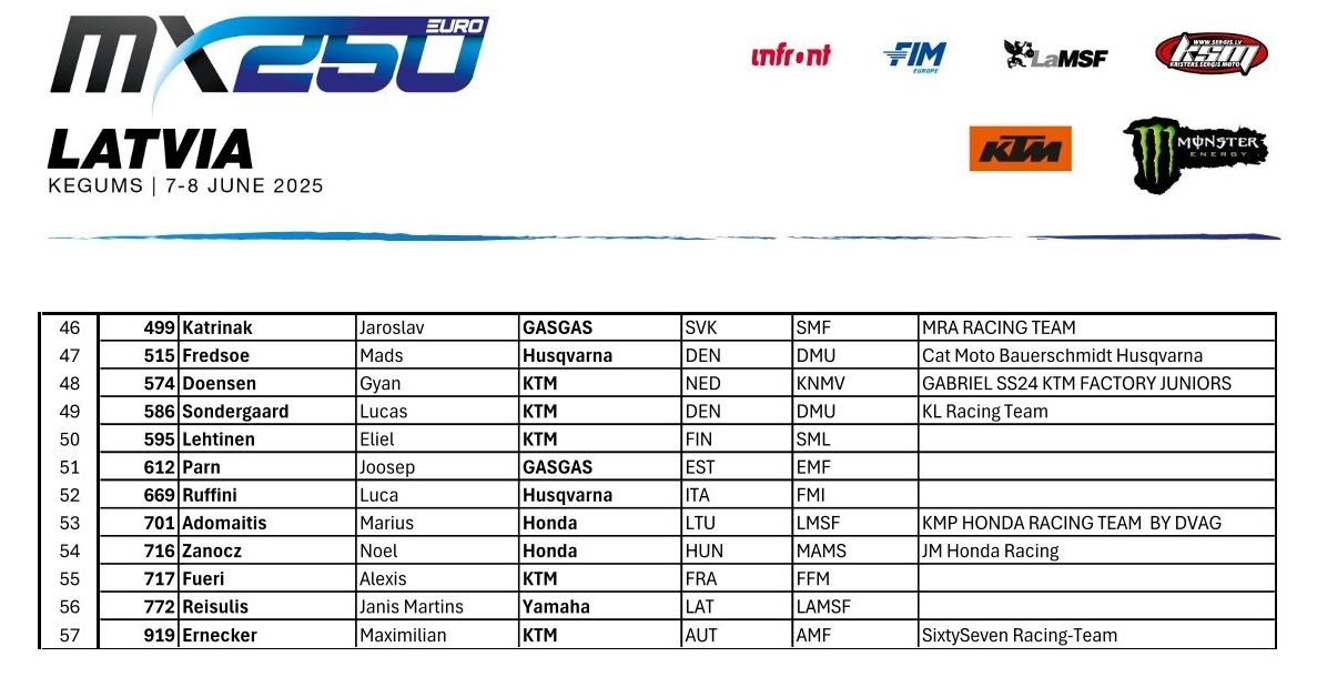 EMX125 Presented by FMF Racing ENTRY LIST