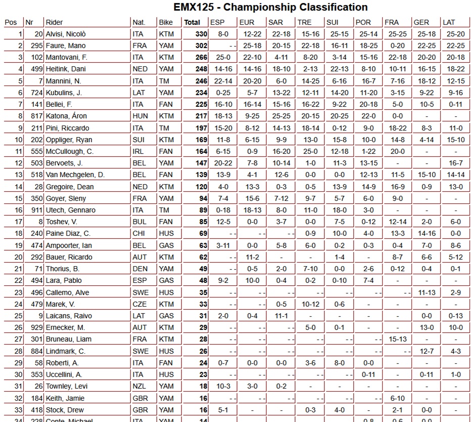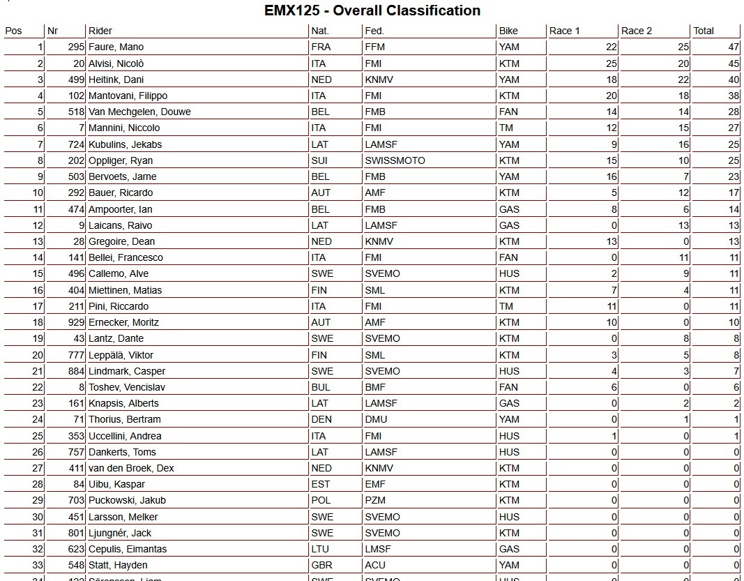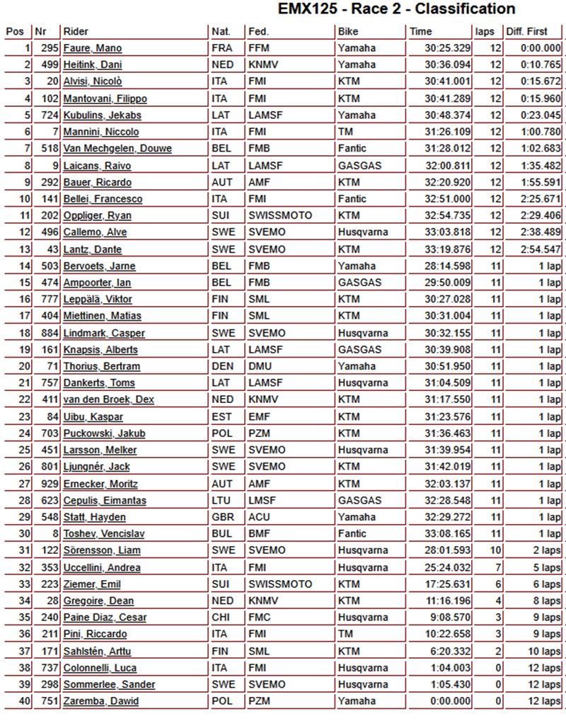 Dani Heitink heeft zijn tweede podiumplaats in het EMX125 Kampioenschap binnen. Met een 4-2 in de manches wist Heitink derde te worden in het dagklassement. De overwinning ging naar Mano Faure voor Nicolo Alvisi en Heitink.