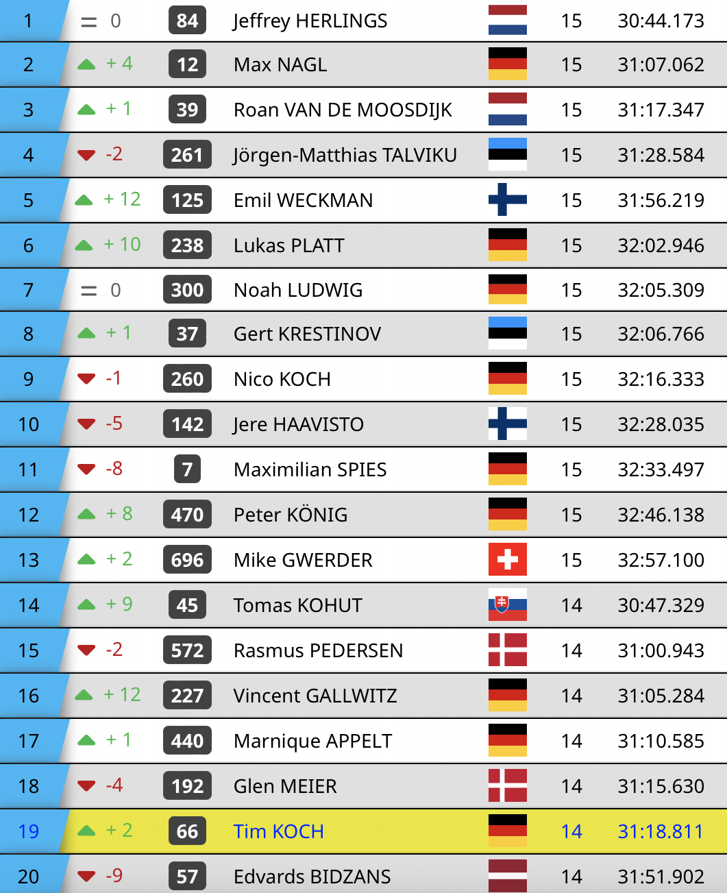 Jorgen Matthias Talviku en Emil Weckman maakten de top vijf compleet. Tias Callens legde in de tweede manche beslag op een 25ste plaats.