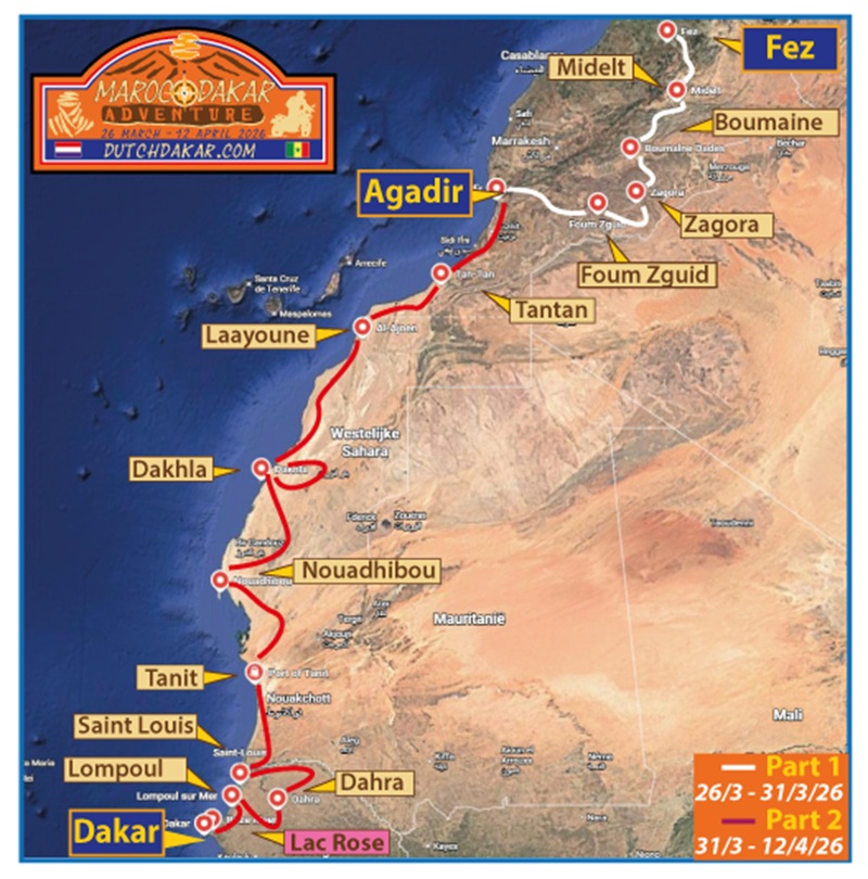 We vertrekken vanaf Fez en Agadir langs oude Dakar-routes via Mauritanië naar het mooie Senegal met als finish Lac Rose bij het vermaarde Dakar. Lees verder!