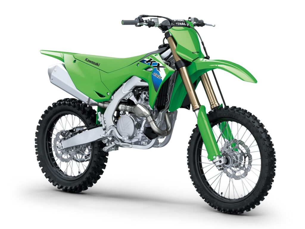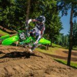 Het topmodel in de KX-reeks voor 2026 is de krachtige KX450. Met deze machine is Romain Febvre op dit moment leider in het MXGP-kampioenschap. Een hydraulische koppeling, elektrische starter en launch control zorgen dat je het vermogen maximaal kunt benutten. Het frame, met geoptimaliseerde stijfheidsbalans, zorgt voor veel gevoel aan de voorzijde, wat heeft bijgedragen aan indrukwekkende prestaties gedurende dit seizoen. Verder beschikt de KX450 over Brembo-remcomponenten, SHOWA vering, ODI Lock-on handvatten en smartphoneconnectiviteit waarmee motormappings, powermodes en Traction Control instellingen eenvoudig via een smartphone aangepast kunnen worden.