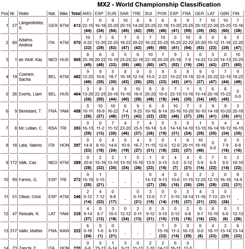 Kay de Wolf heeft beide manches van de Grand Prix van Finland weten te winnen. Door deze dubbele zege heeft hij zijn achterstand in de tussenstand flink weten te verkleinen. In Finland stond hij samen met Sacha Coenen en Andrea Adamo op het podium.