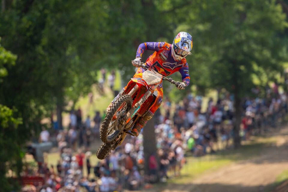 Chase Sexton heeft de eerste manche van de AMA Pro Motocross 450 in Washougal gewonnen. Sexton nam gelijk na de start de leiding en wist de aanvallende Jett Lawrence achter zich te houden. Toen Lawrence ten val kwam, had Sexton een gat en won de manche. Eli Tomac nam door de val van Lawrence de tweede plaats over en wist deze vast te houden tot aan de finish. Lawrence werd derde voor RJ Hampshire en Hunter Lawrence.