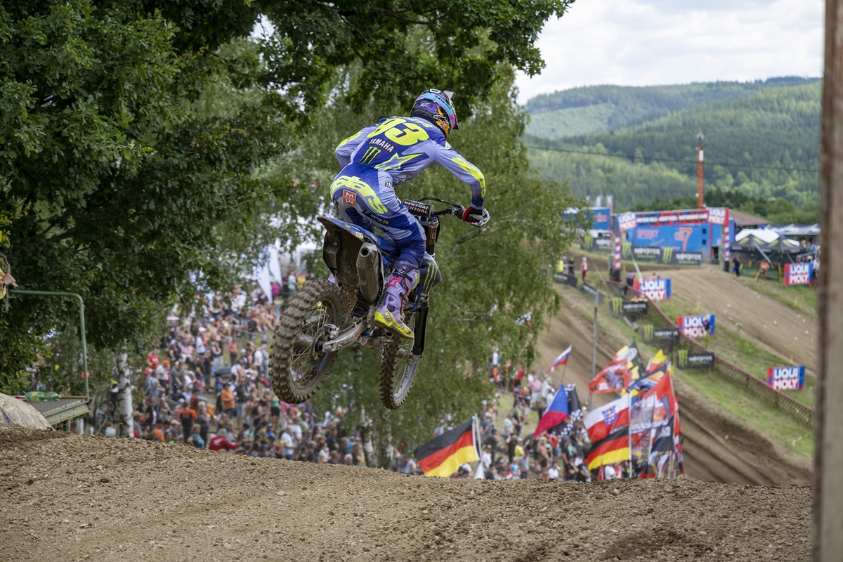 Na het diepe zand in Finland kregen de rijders dit weekend in Tsjechië een hard, old-school parcours voorgeschoteld. Monster Energy Yamaha Factory MXGP rijders Calvin Vlaanderen (7de) en Jago Geerts (8ste) doken in de top 10 in Loket. Maxime Renaux – die zijn wederoptreden maakte – begon sterk met een zesde plaats in de eerste reeks, maar moest in de tweede manche naar de kant nadat hij werd aangereden.